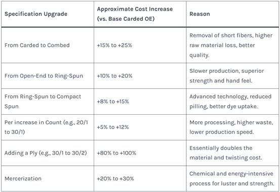Table 2: Price Impact of Yarn Specifications (Indicative Premium)