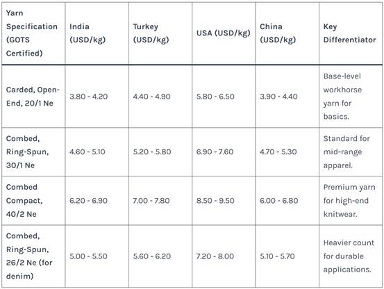 Table 1: Indicative Global Organic Cotton Yarn Spot Prices (Q2 2025)